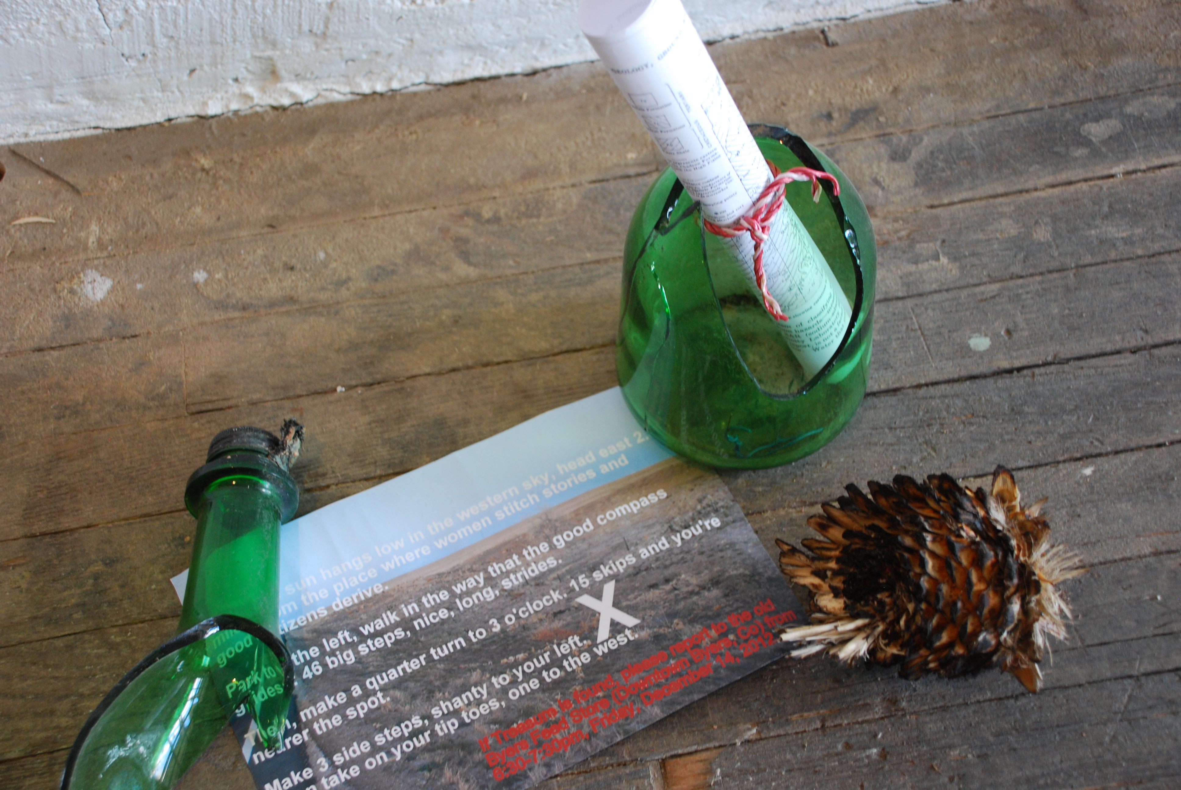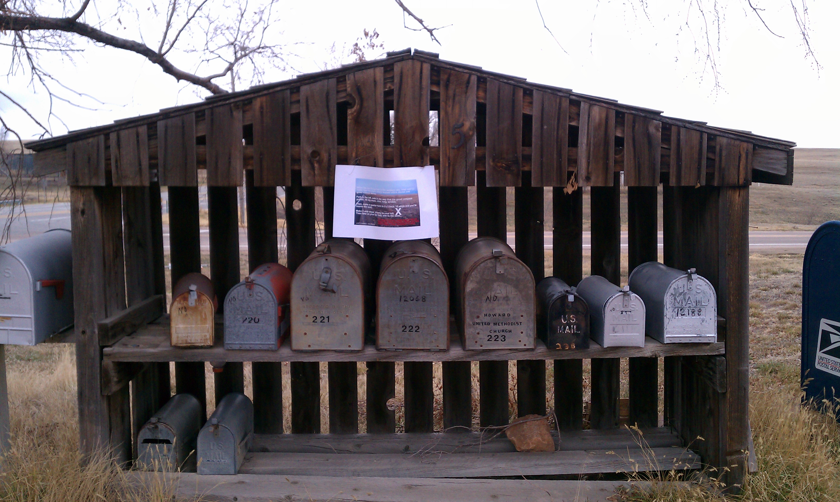 “Hidden Treasure” invited the community of Last Chance in rural, eastern Colorado to find a hidden treasure. A treasure map was posted where community members receive mail. A token treasure (ironic black ceramic poodle) was located at the site of the Last Chance Fire 2012 where 50,000 acres were devastated. The “X” marked the spot of the token treasure with an accompaning invitation to bring the token to the M12 Gallery space in nearby Byers. The intent was for the treasure hunt to catalyze dialogue between the artist and local residents about the valuable land resource at the treasure site.